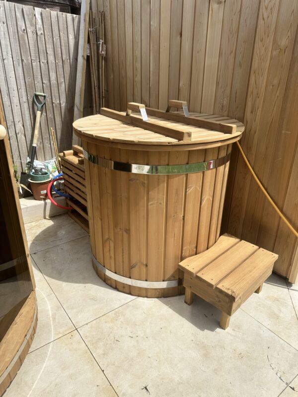 Crafted with a Thermowood exterior and stainless steel interior, this cold plunge tub combines natural beauty with lasting performance. The built-in seat offers comfort during use, while the included wooden lid and step stool complete the experience with both function and style. Easy to clean, durable, and designed to complement any space.